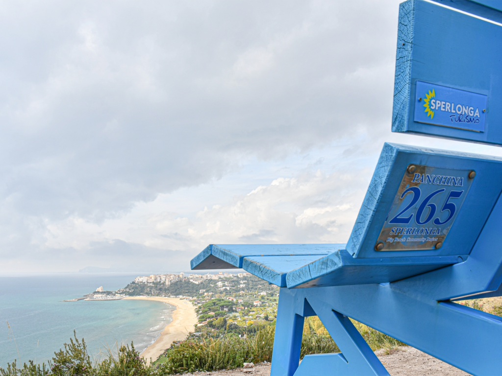 Realizzata con materiali ecosostenibili da artigiani locali, è stata inaugurata il 15 ottobre 2022 e fa parte del Big Bench Community Project, un’iniziativa no-profit promossa da Chris e Catherine Bangle. Vi si accede da un sentiero vicino al Museo Archeologico Nazionale ed offre una vista mozzafiato sul Golfo del Circeo, sulle Isole Pontine, le Flegree ed Ischia.